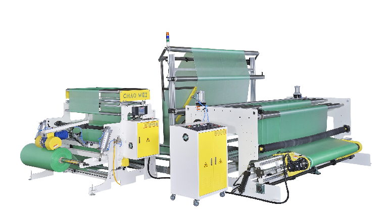 Machine CW-UT-SV series is a rewinder to unfold HDPE or LDPE tubular film roll to large single sheet roll, by use of a reverse triangle folder device. These large plastic single sheet films are suitable for use in agricultural and construction fields as well as furniture protective cover.