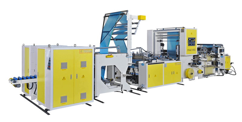 - High speed servo driven system, special for producing side sealed draw tape garbage bags on roll.
