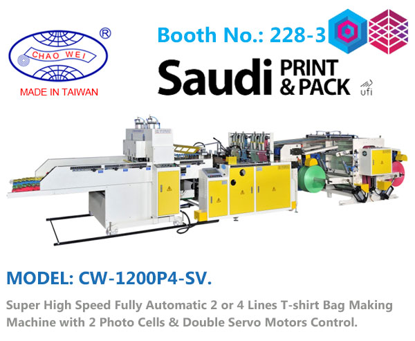 With the new coming year, CHAO WEI is very happy to inform you that our latest model has been launched onto the market. And this brand new machine will debut in SAUDI PLASTICS & PETROCHEM2018 (SAUDI PRINT & PACK2018) during 21-24 January. We welcome you to visit our booth at #228-3 to see this new machine.
